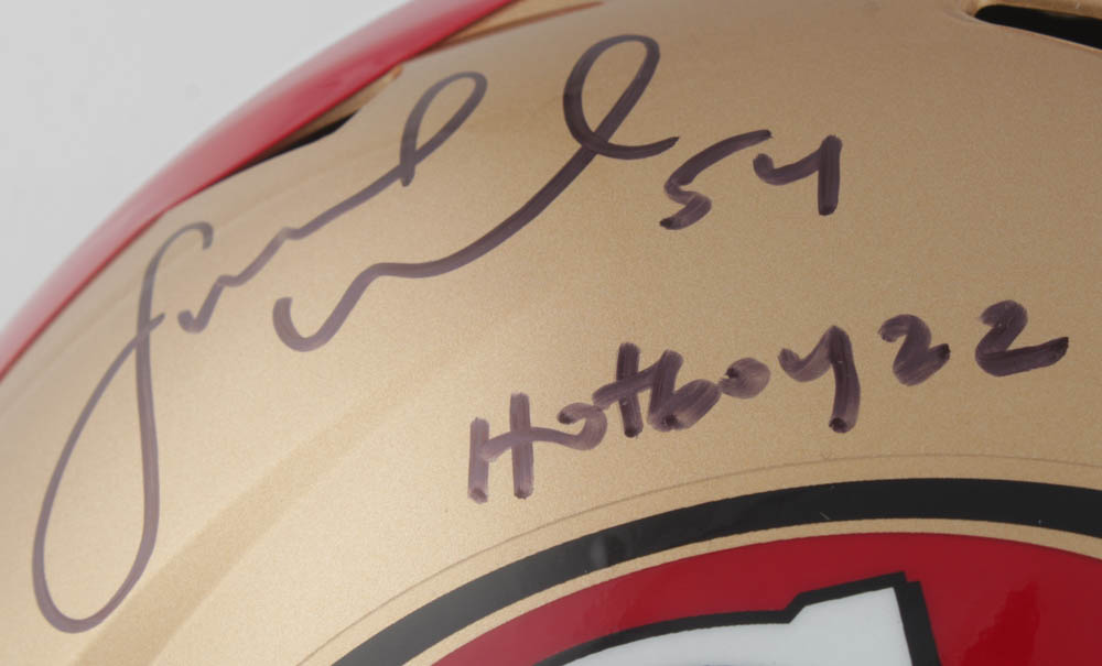 Riddell San Francisco 49ers full-size replica speed helmet has been hand-signed by Kwon Alexander and Fred Warner.