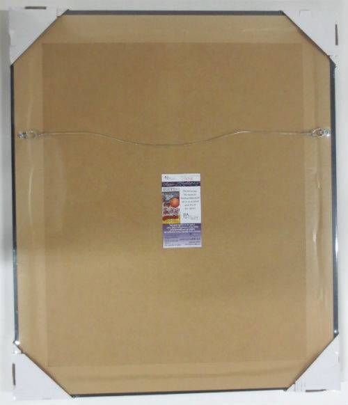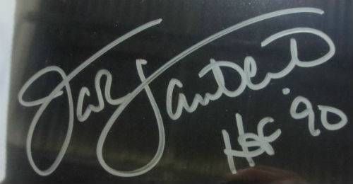 Custom framed photo display measures 22" x 27" in size and features a 16" x 20" photo which has been hand-signed in silver paint pen by Jack Lambert (HOF). Brand new professional framing with UV protective glass. The frame is ready for display. The autograph includes an official James Spence Authentication (JSA) hologram and matching COA and an official Jack Lambert hologram for authenticity purposes.