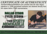The lot / autograph(s) includes an official Your Sports Memorabilia Store Tyler Seguin hologram and COA for authenticity purposes.