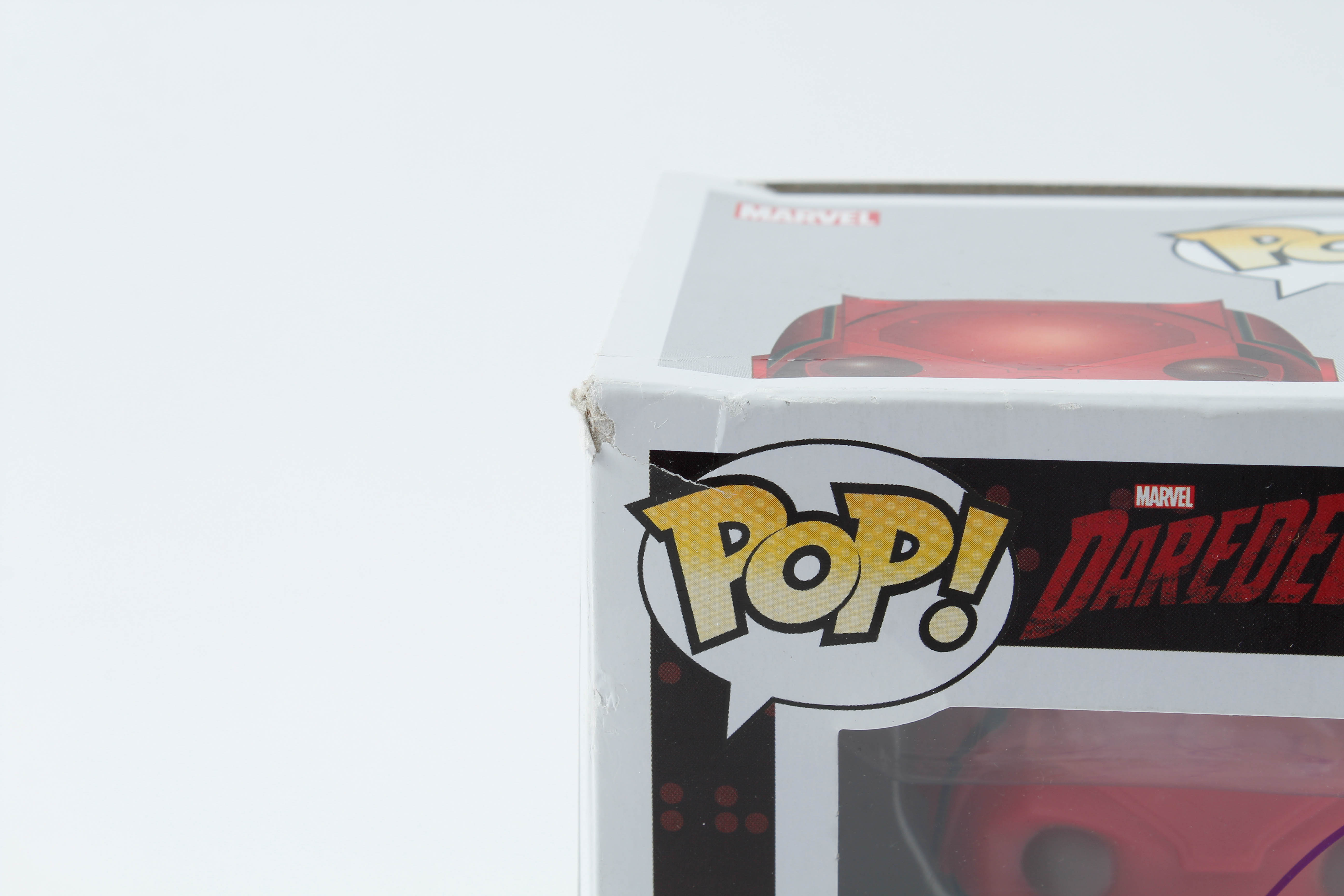 Funko Pop! Vinyl figure measures approximately 4" tall and has been hand-signed on the packaging by Charlie Cox. Please see photos for details regarding the condition of the box.