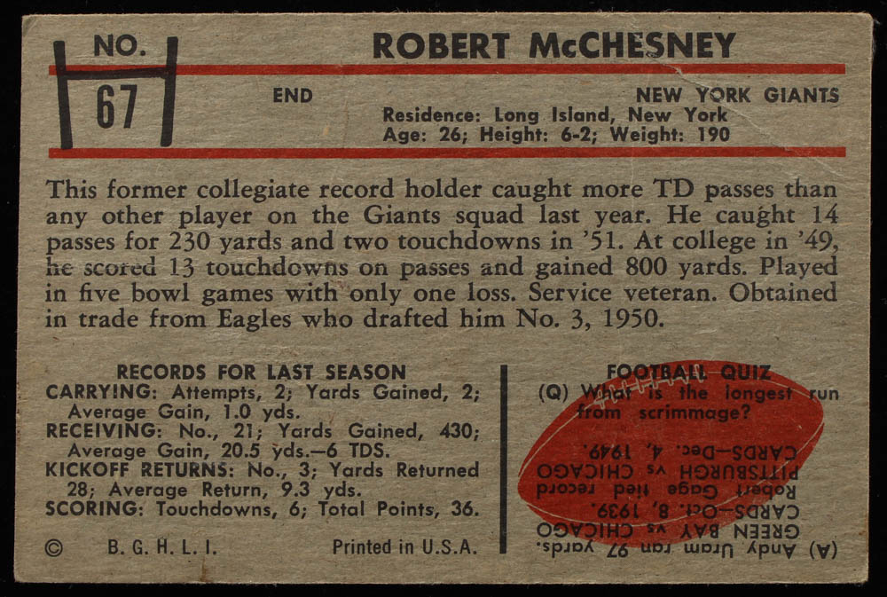Bob McChesney 1953 Bowman #67 RC