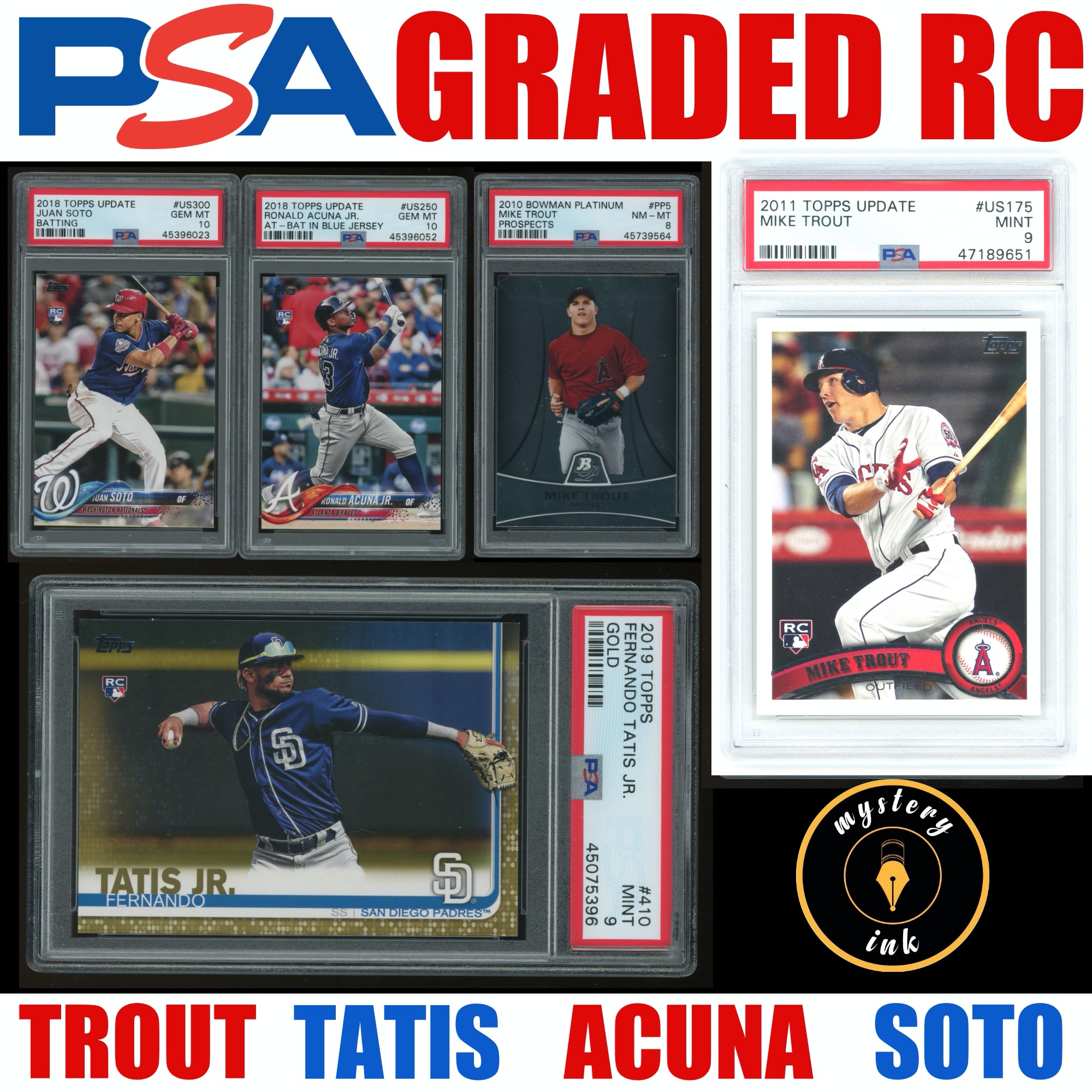 Iconic 2011 MIKE TROUT Topps Update US175 PSA 9! / PSA 10 Acuna & Soto / TOPPS GOLD TATIS! Only 250 Packs!