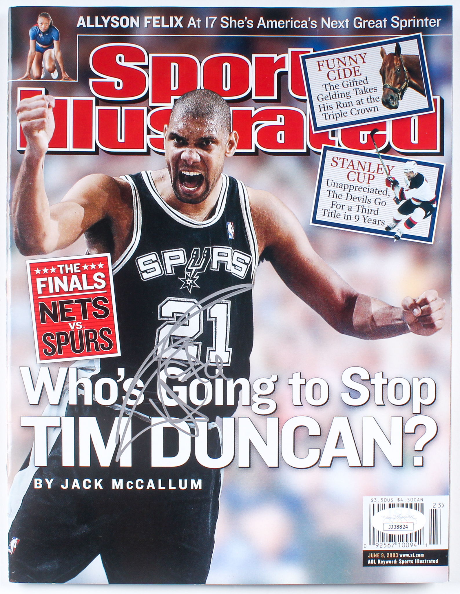 June 2003 "Sports Illustrated" Magazine has been hand-signed by Tim Duncan (San Antonio Spurs).