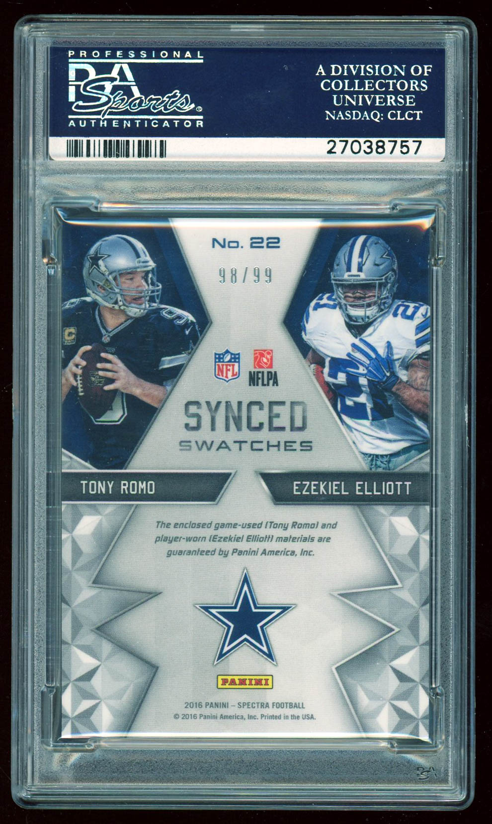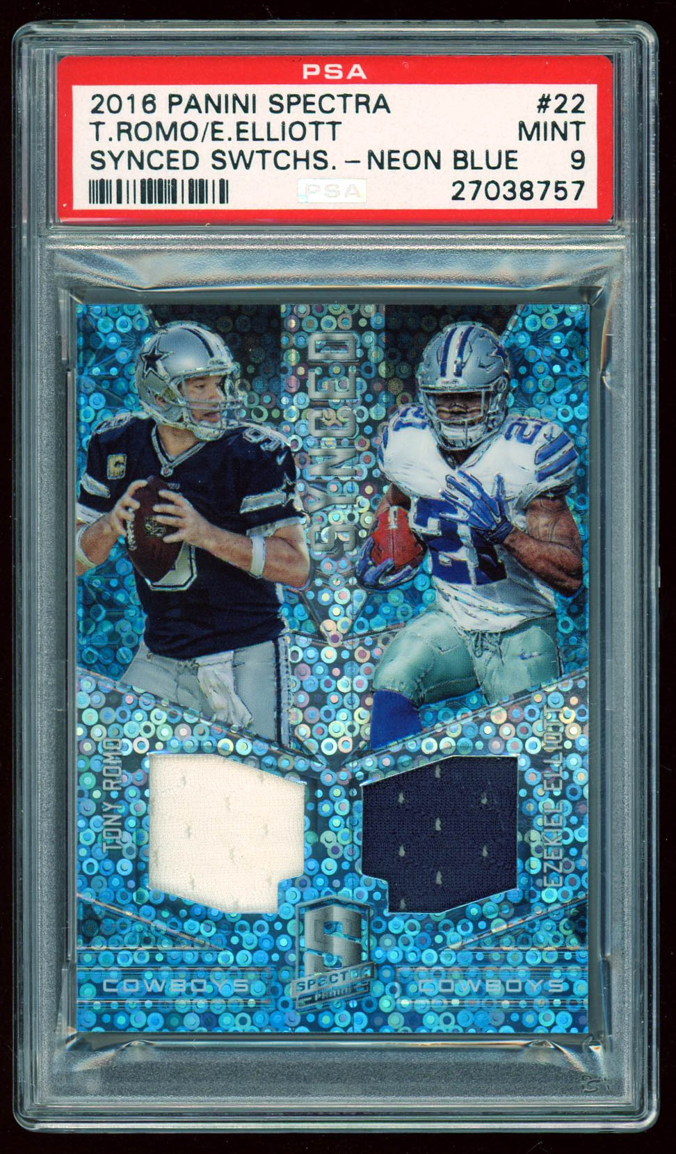 Ezekiel Elliott / Tony Romo 2016 Panini Spectra Synced Swatches Neon Blue #22 (PSA 9)