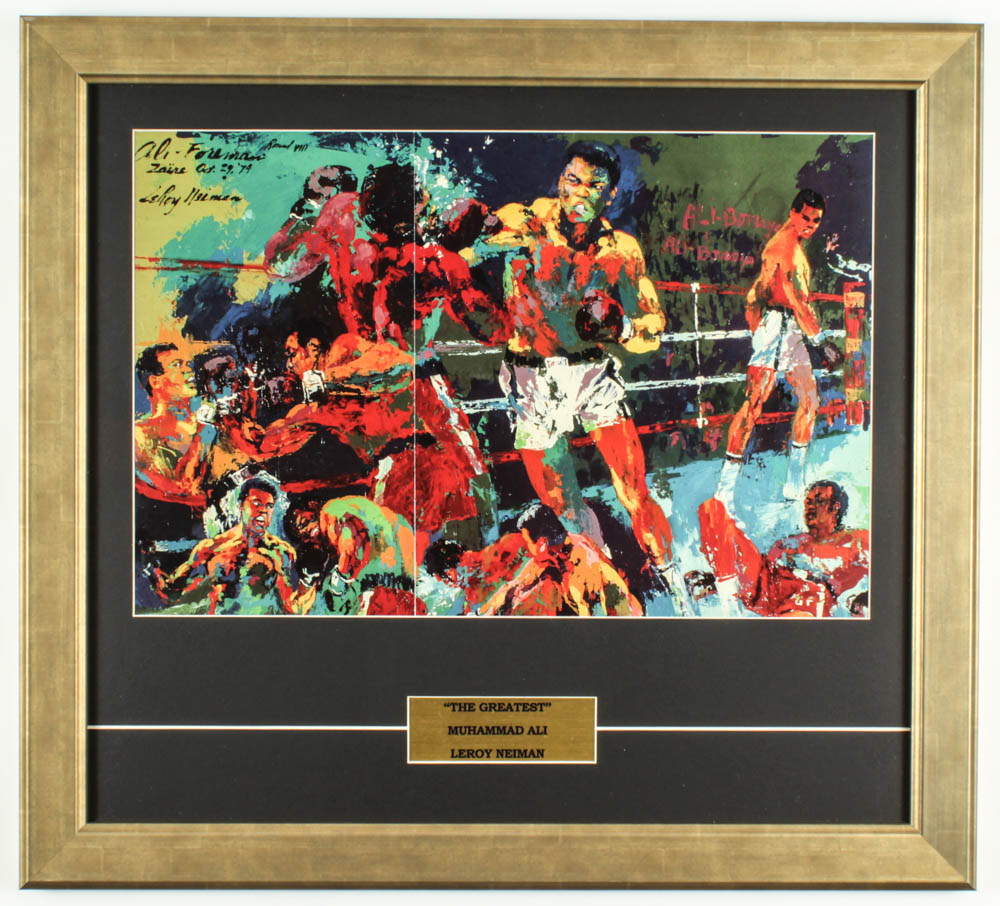 Custom frame measures 19.5" x 21.5" in size and features a LeRoy Neiman print of Muhammad Ali (D. 2016, HOF).