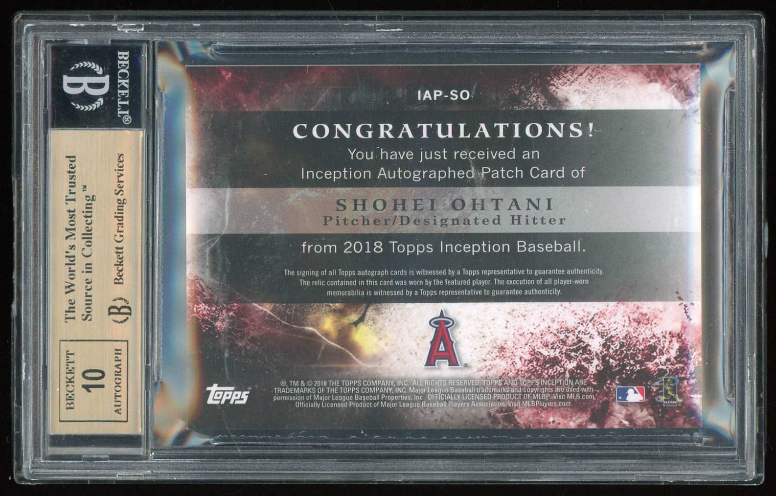 Shohei Ohtani 2018 Topps Inception Patch Autographs #IAPSO (BGS 9.5)