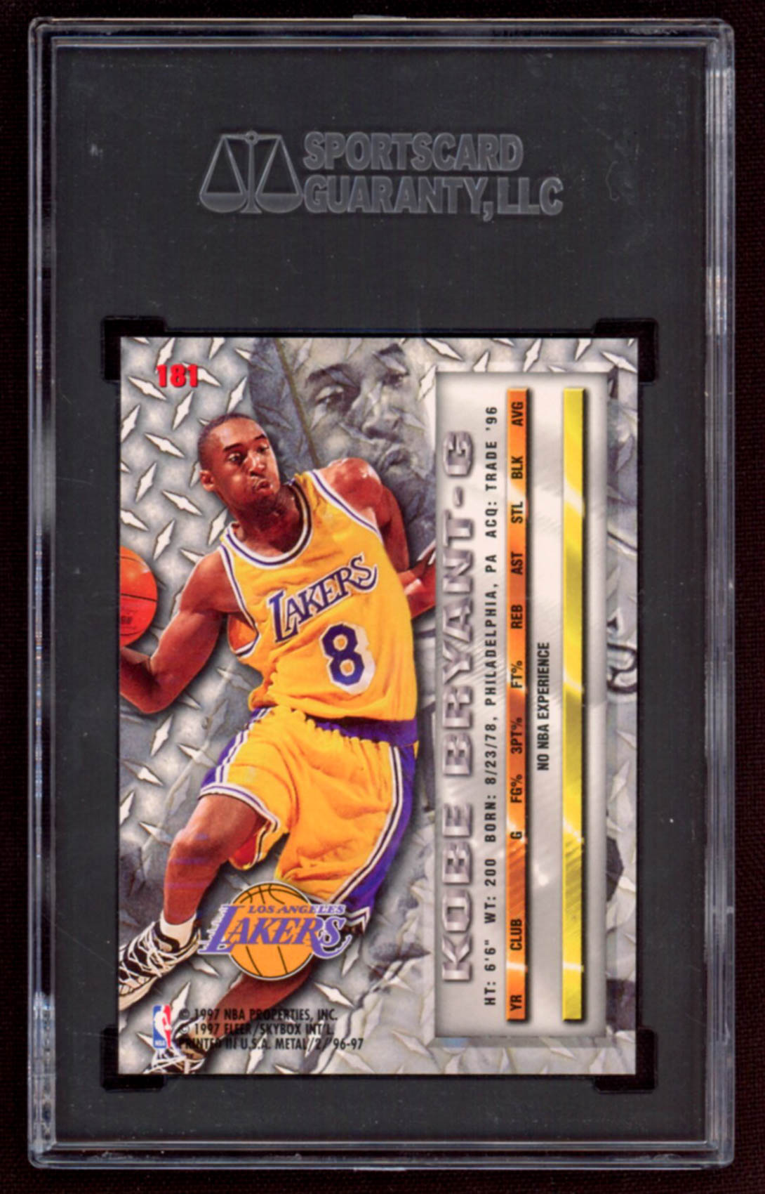 Kobe Bryant 1996-97 Metal #181 RC (SGC 10)