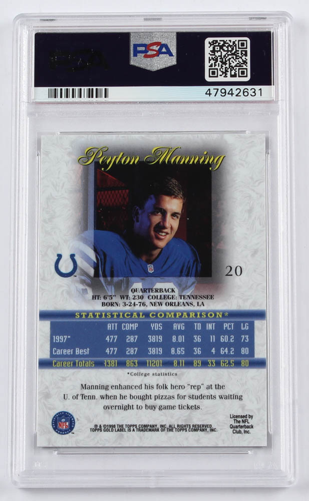 Peyton Manning 1998 Topps Gold Label Class 1 #20 RC (PSA 9)