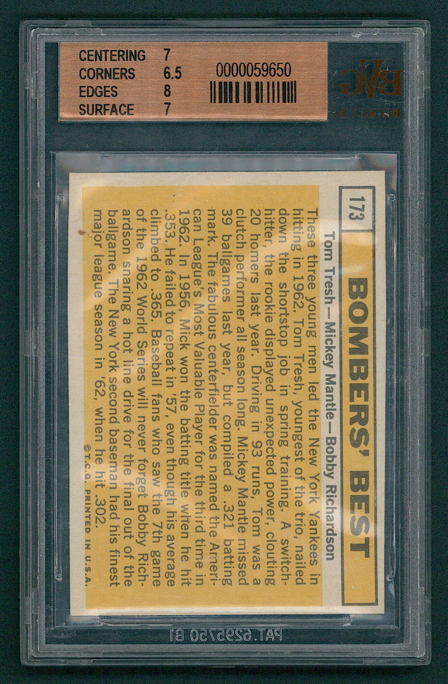 Tom Tresh / Mickey Mantle / Bobby Richardson 1963 Topps #173 Bomber's Best (BVG 7)