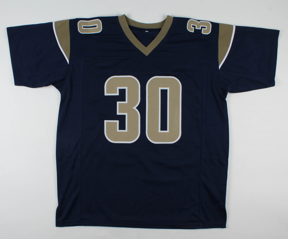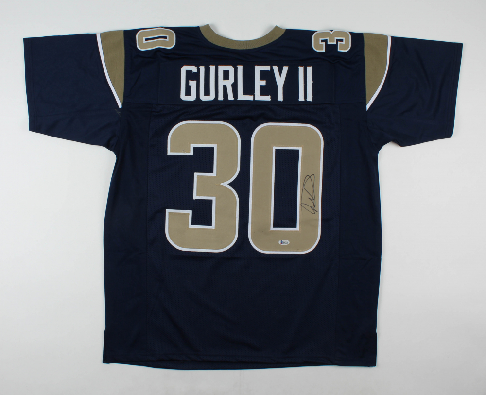 Custom on-field style jersey. Everything is sewn on, size XL. Hand-signed by Todd Gurley.