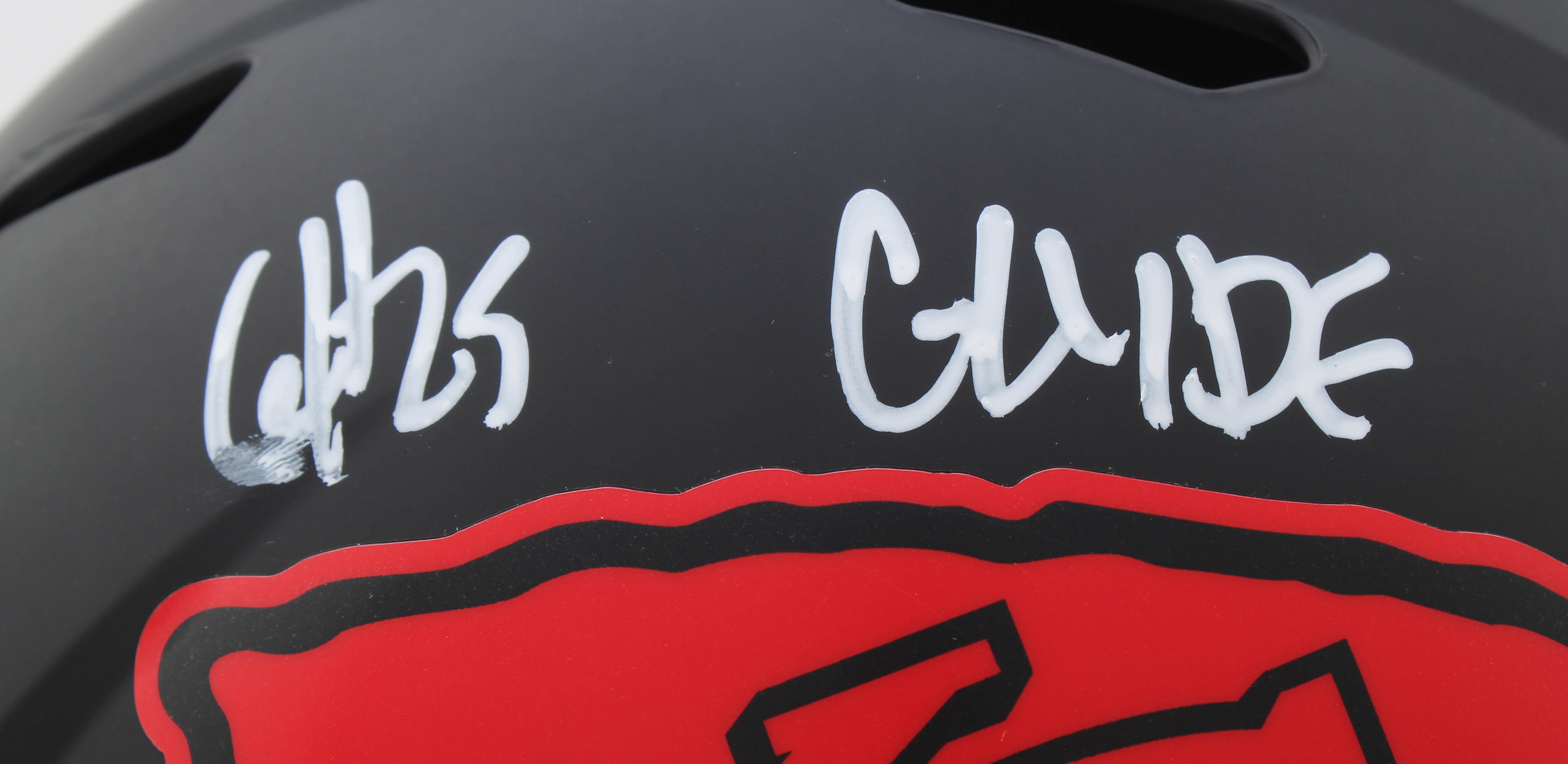 Riddell Kansas City Chiefs full-size replica Eclipse Alternate Speed Helmet has been hand-signed and inscribed by Clyde Edwards-Helaire.