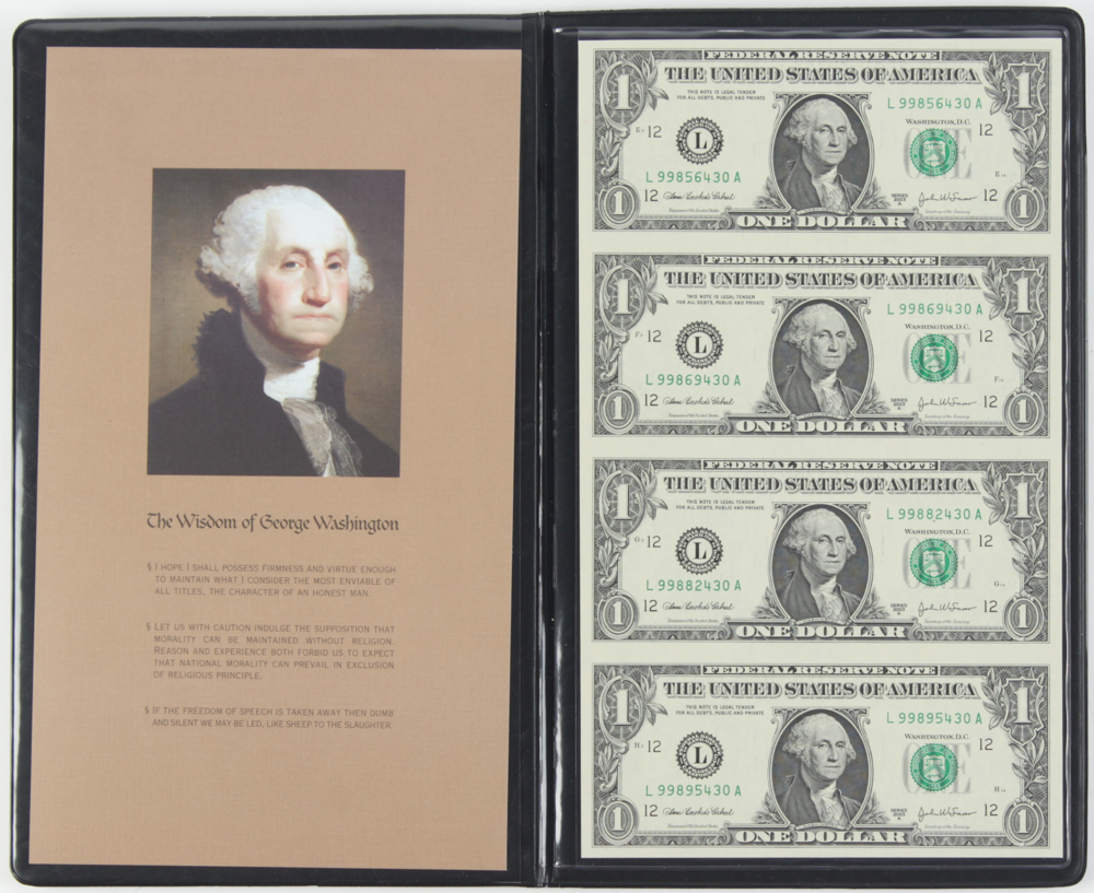 $1 One Dollar US Currency Notes Display Folder with (4) Bills