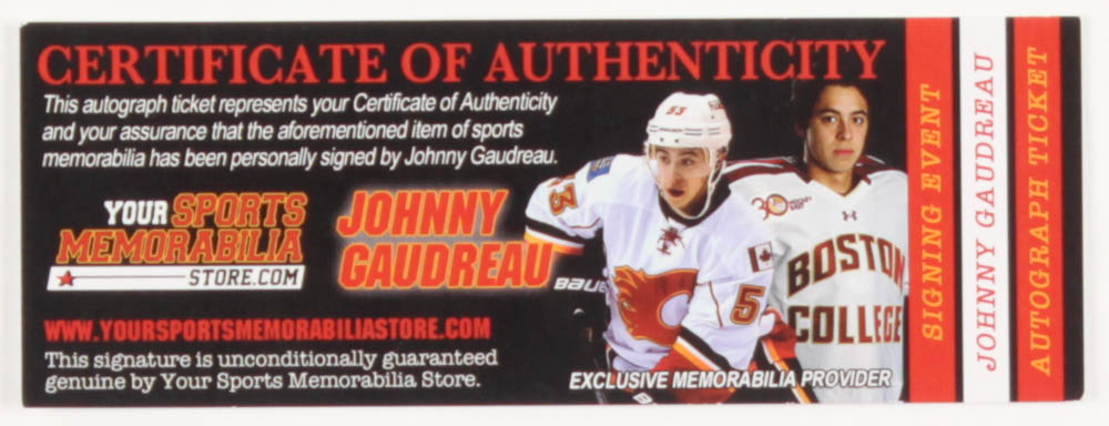 The lot / autograph(s) includes an official Your Sports Memorabilia Store Johnny Gaudreau hologram and COA for authenticity purposes.