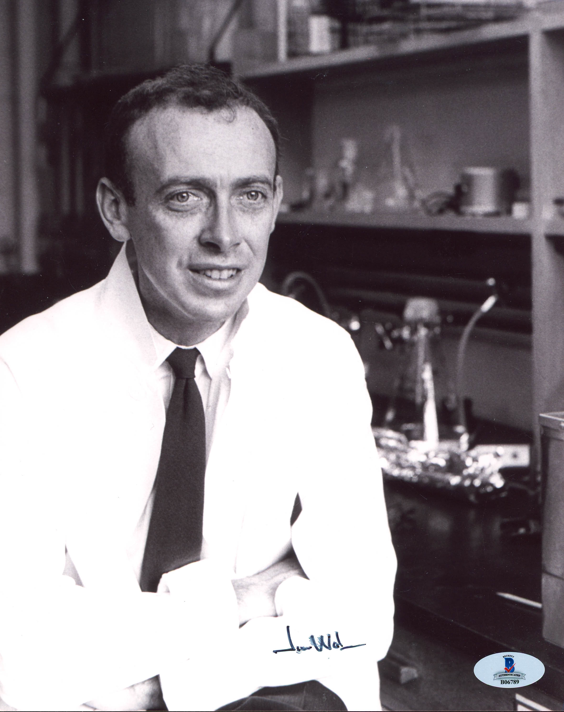 Photo measures 8" x 10" in size and has been hand-signed by James Watson (Father of DNA and co-discovered the double-helix).