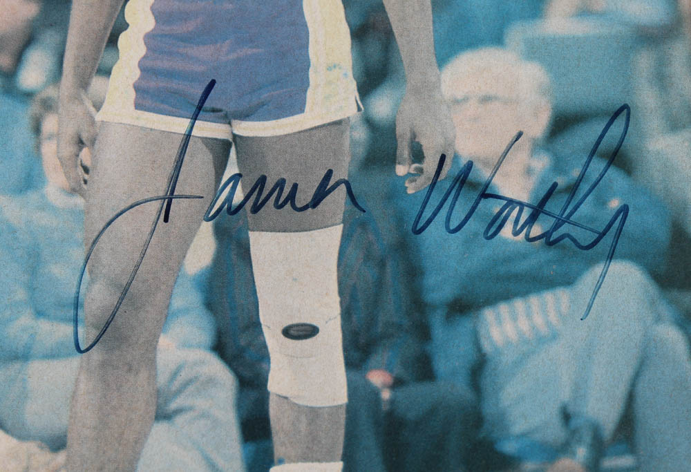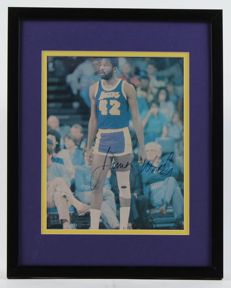 Custom framed photo measures 12" x 15" in size and has been hand-signed by James Worthy (Los Angeles Lakers, HOF). Please see images for details regarding the condition of the frame.