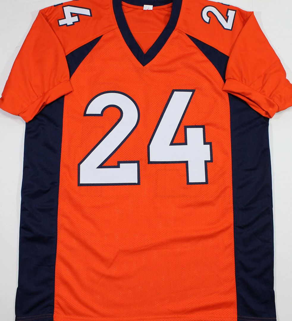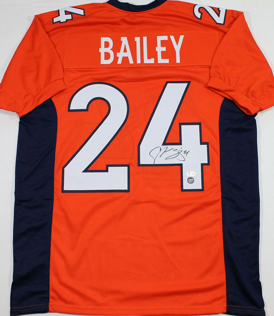 Custom on-field style jersey. Everything sewn on, size XL. Hand-signed by Champ Bailey (HOF).
