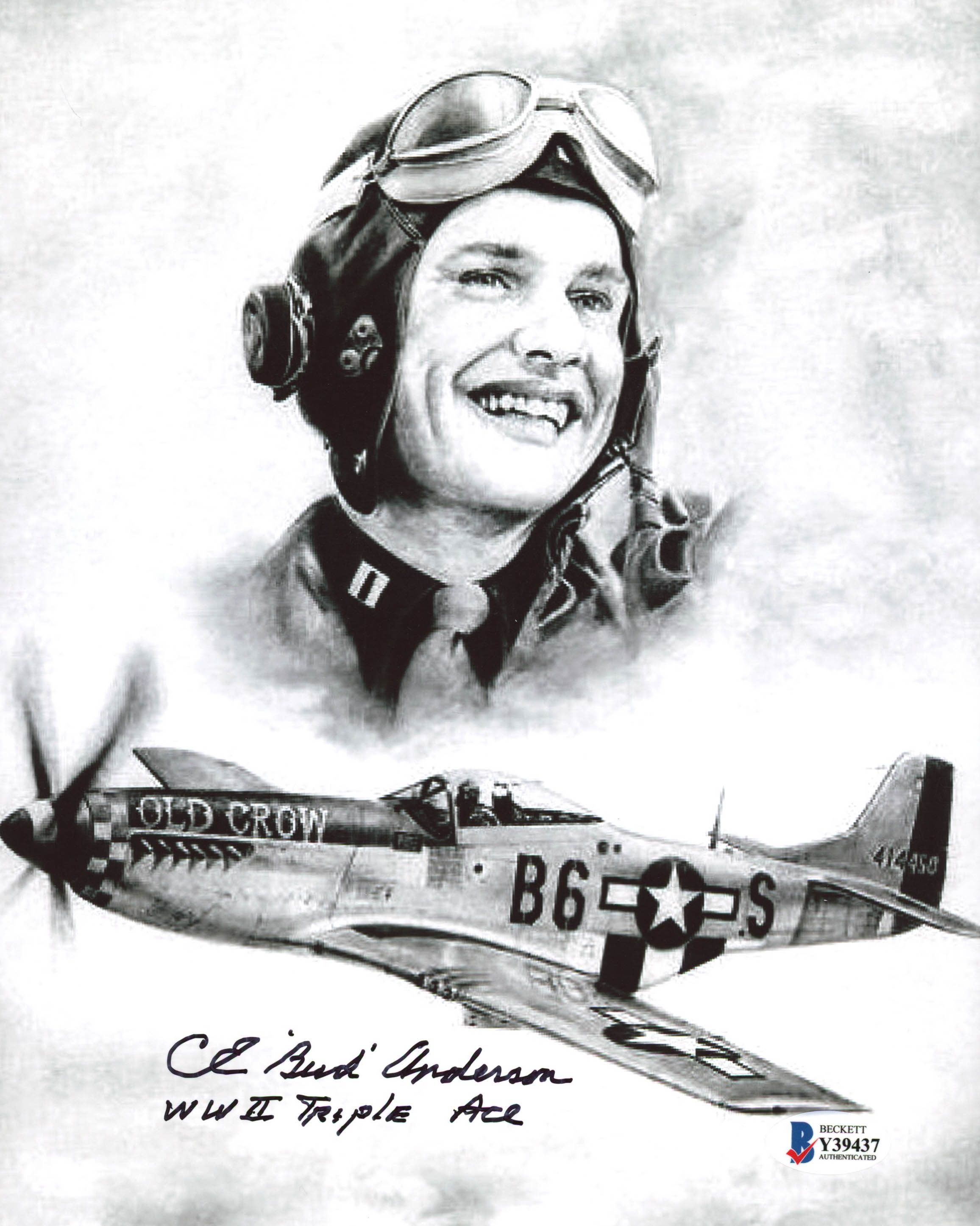 Photo measures 8" x 10" in size and has been hand-signed by Clarence Emil "Bud" Anderson.
