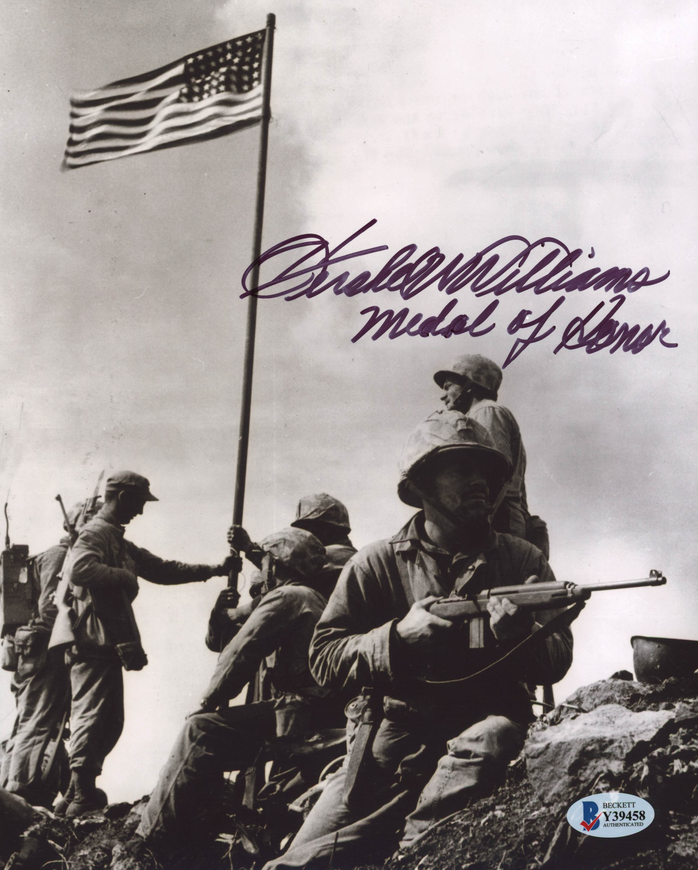 Hershel W. Williams Signed 8x10 Photo Inscribed "Medal of Honor" (Beckett COA)