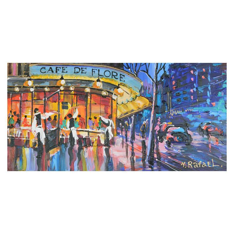 "Waiting at the Café de Flore" is an original painting, acrylic on stretched canvas, by Yana Rafael. Hand signed by the artist, this piece is accompanied by certificate of authenticity and measures approximately 12" x 24".