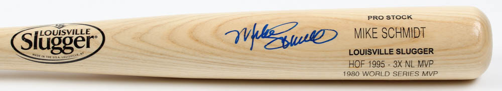 Louisville Slugger Pro Stock baseball bat has been hand-signed by Mike Schmidt (Philadelphia Phillies).