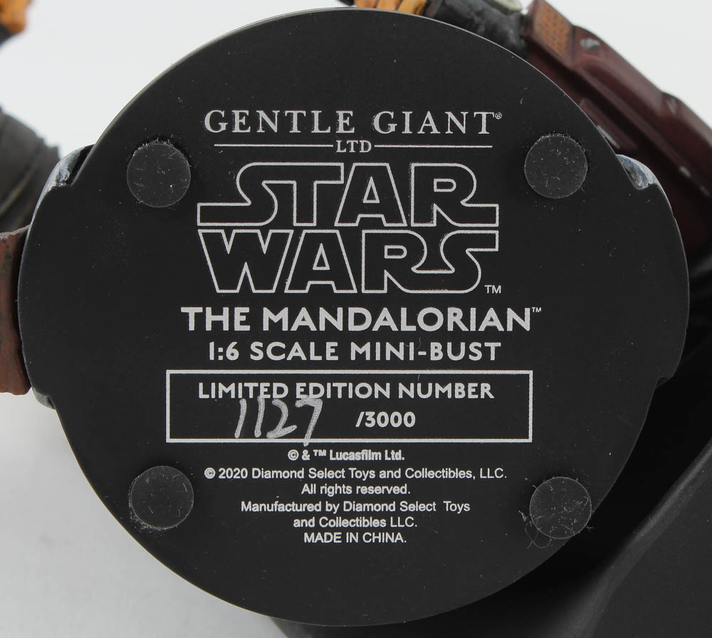 Disney's Star Wars "The Mandalorian" Gentle Giant "Mandalorian MK1" 1:6 scale bust measures approximately 6" tall. The statue is limited edition and has been numbered #1,127/3,000.