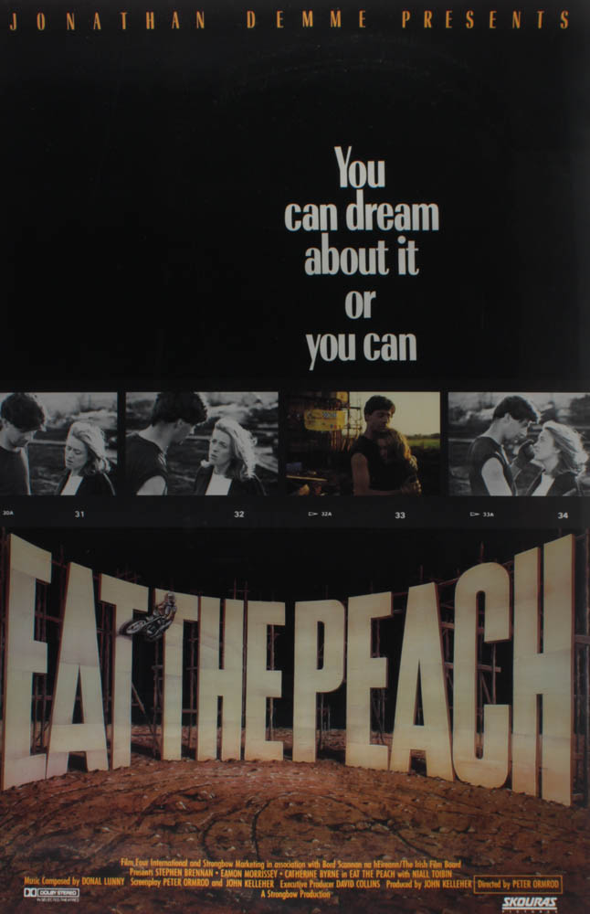 Poster measures 27" x 40" in size and features a print from the film "Eat The Peach" (1986). Please see images for details regarding the condition of the poster.