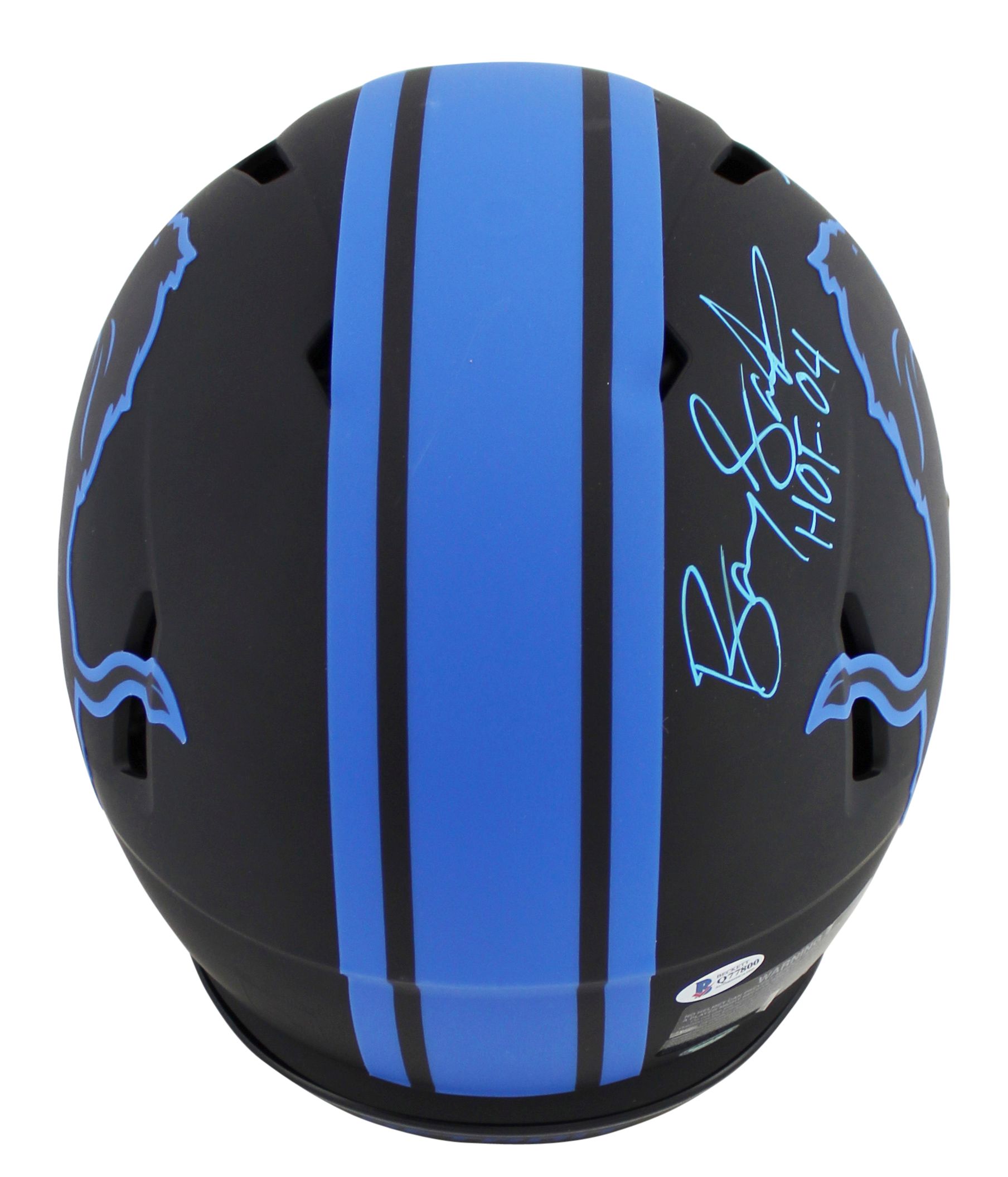 Riddell Detroit Lions Eclipse Alternate Speed full-size authentic on-field helmet. Hand-signed and inscribed by Barry Sanders (HOF).