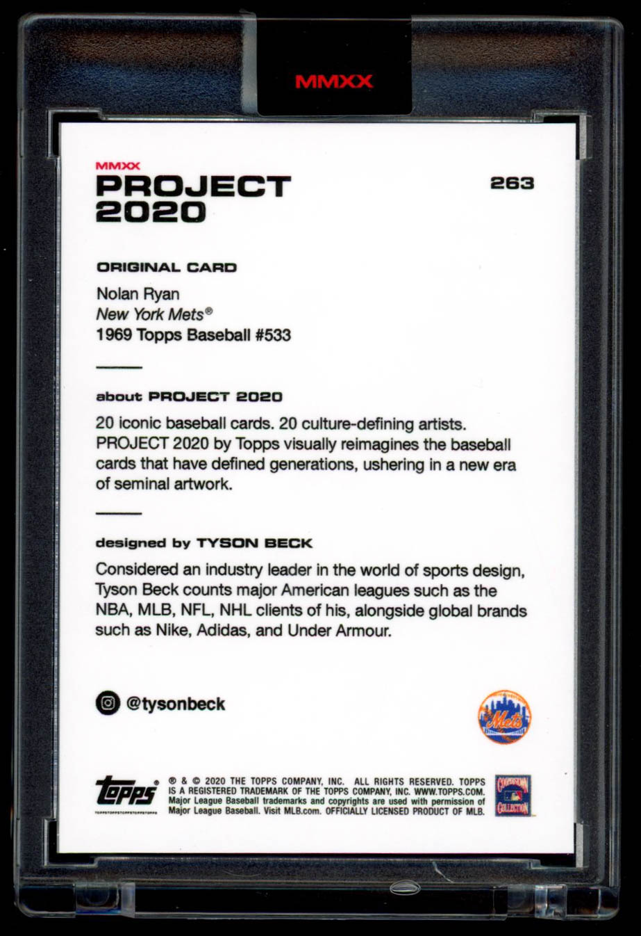 Nolan Ryan 2020 Topps Project 2020 #263 / Tyson Beck (Project 2020 Encapsulated)
