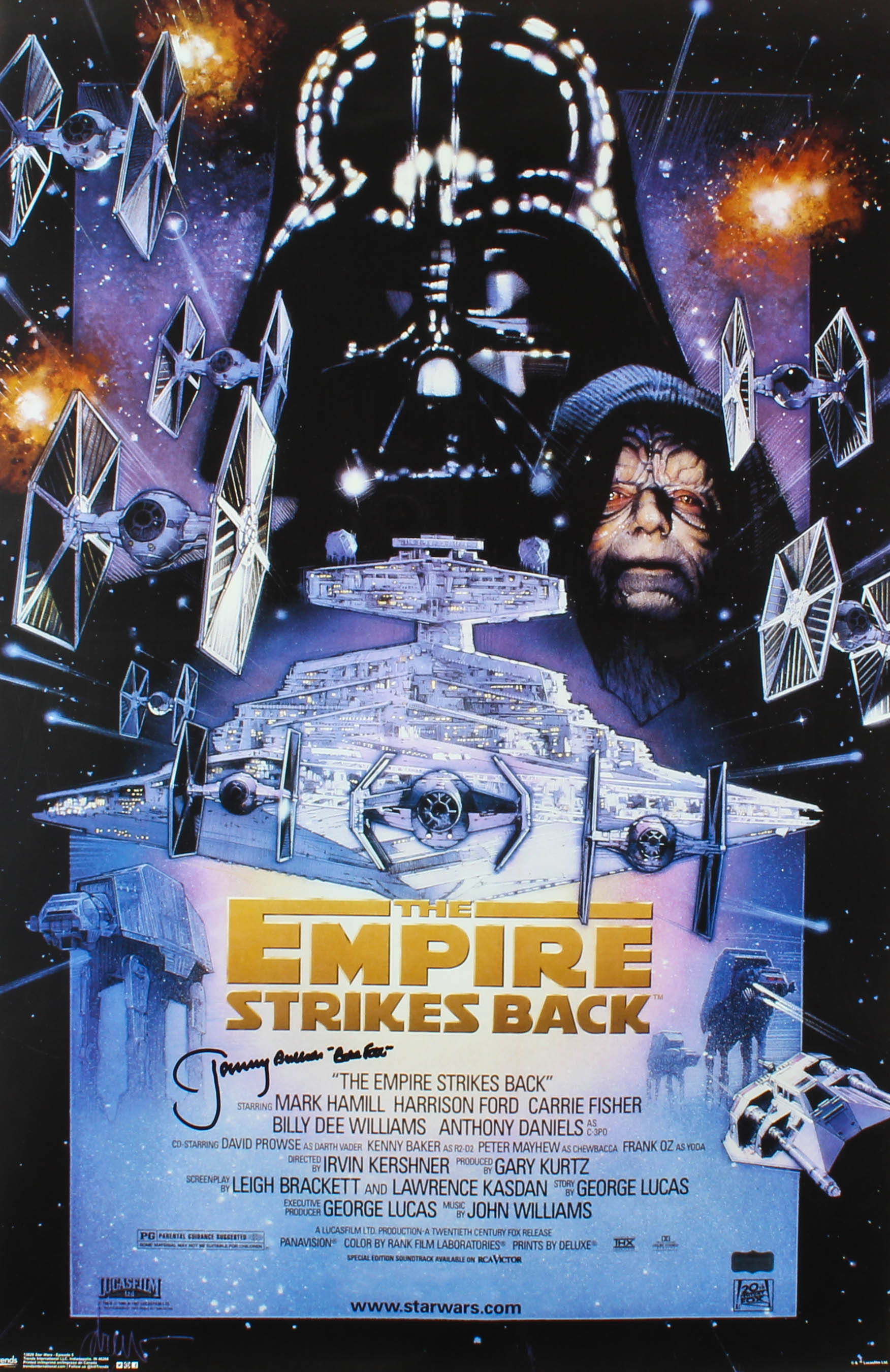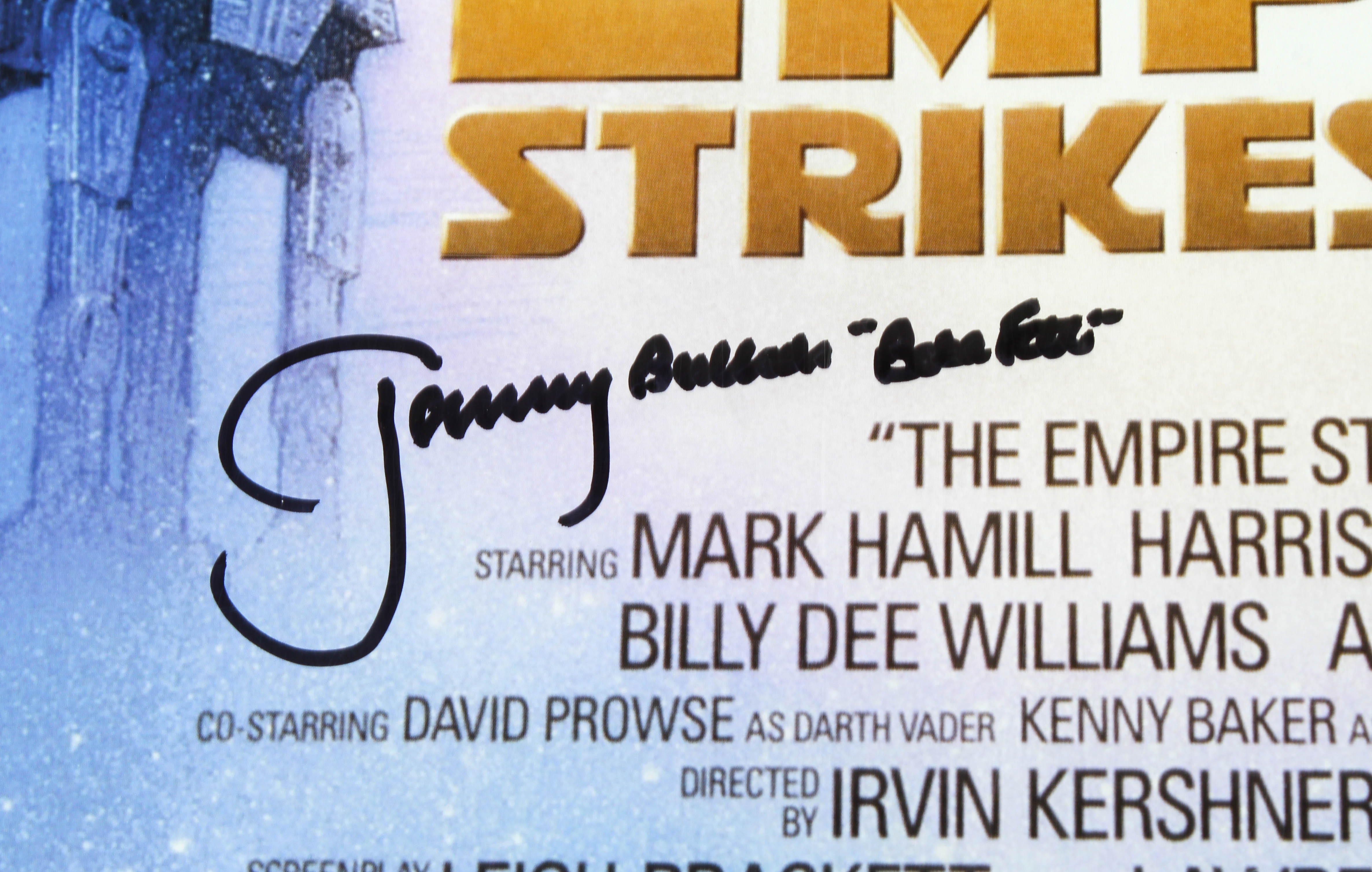 Poster measures 22" x 34" in size. Hand-signed and inscribed by Jeremy Bulloch (Boba Fett).