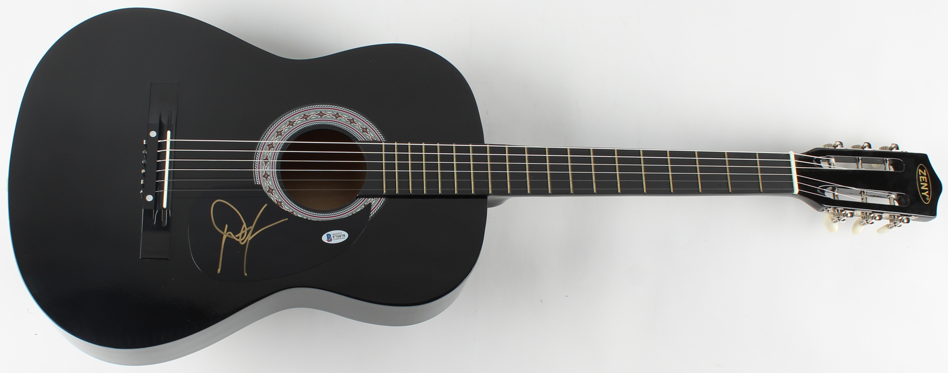 Zeny full-size acoustic guitar measures approximately 38" in length and is hand-signed on the pick guard by Dwight Yoakam.