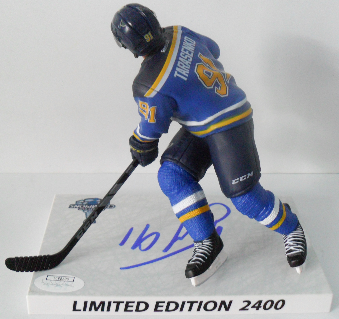 Figurine measures approximately 6" in height. The base has been signed by Vladimir Tarasenko (St. Louis Blues). The figure is a limited edition and has been numbered #2400.