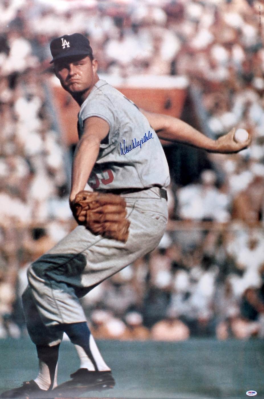 Poster measures 24" x 36.5" in size. Has been hand-signed in blue felt-tip pen by Don Drysdale (D 1993, HOF). The autograph includes an official PSA/DNA hologram and matching COA for authenticity purposes.
