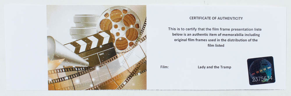 Walt Disney's "Lady and the Tramp" LE 8x10 Custom Matted Original Film / Movie Cell Display