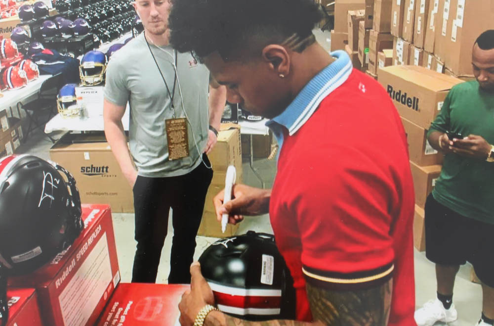 Riddell Ohio State Buckeyes mini speed helmet. Hand-signed by Terrelle Pryor (New York Jets).