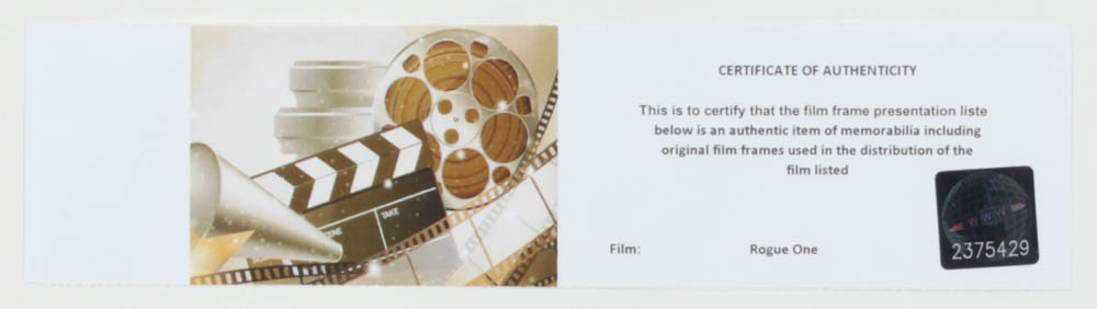"Rogue One: A Star Wars Story" LE 8x10 Custom Matted Original Film / Movie Cell Display