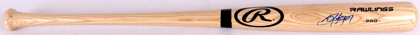 Rawlings Professional Model Baseball Bat. Hand-signed in blue felt-tip pen by Bo Jackson (Royals). The autograph includes an official James Spence Authentication (JSA) hologram and matching COA for authenticity purposes. The signing of this item was witnessed by JSA.