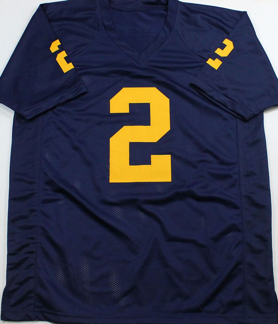 Custom on-field style jersey. Everything is sewn on, size XL. Hand-signed by Charles Woodson.