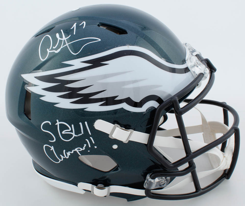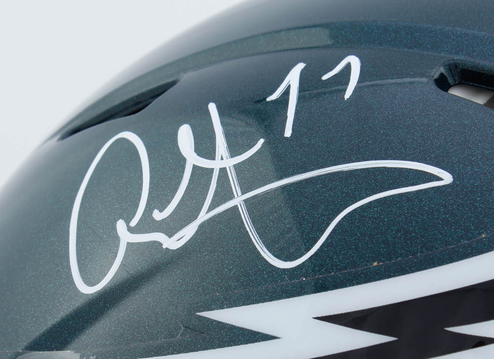 Riddell Philadelphia Eagles authentic on-field full-size Eclipse Alternate speed helmet. Hand-signed and inscribed by Alshon Jeffery.