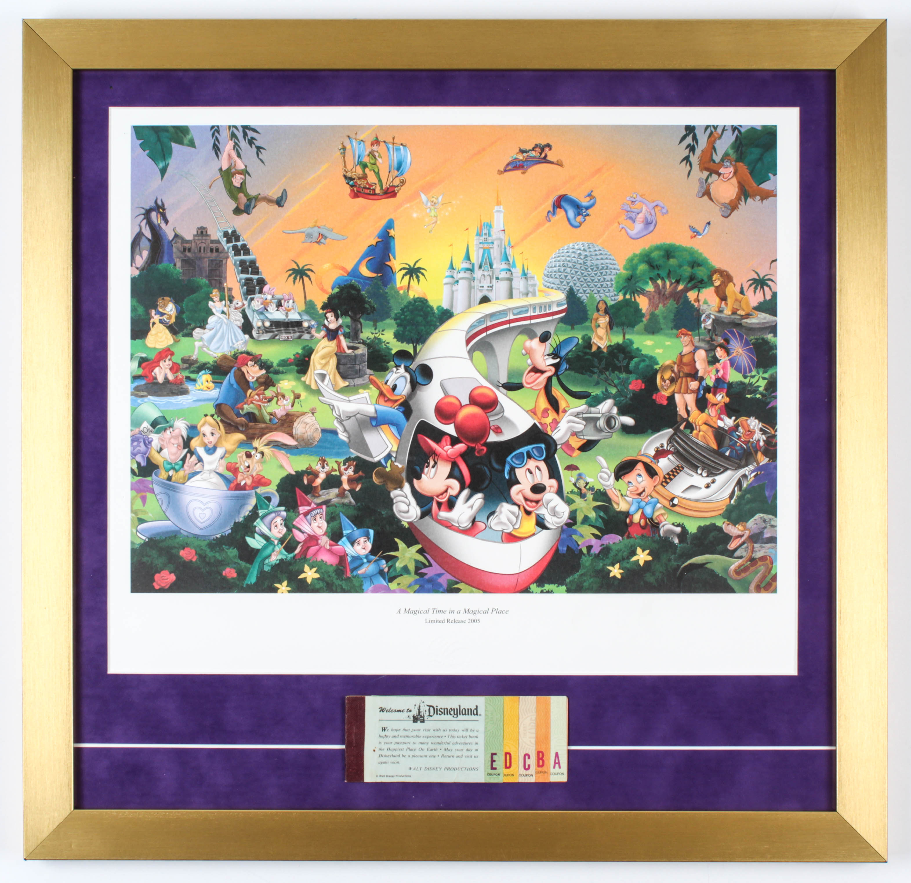 Walt Disney "A Magical Time in a Magical Place" 20x21 Custom Framed Print Display With Vintage Ticket Booklet