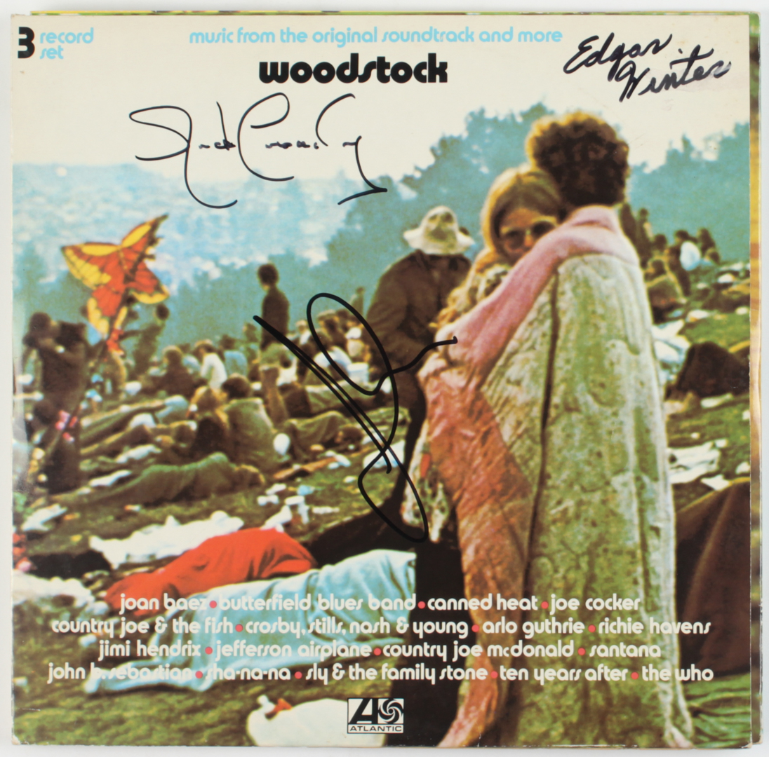 Jorma Kaukonen, Jack Cassidy, & Edgar Winter Signed Woodstock Vinyl Album (JSA COA)