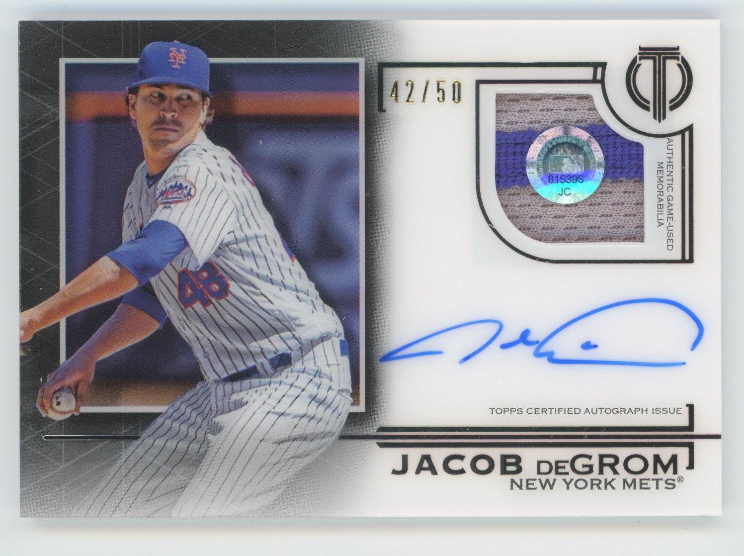 —Jacob DeGrom 2019 Topps Tribute 2-Color Patch Auto /50