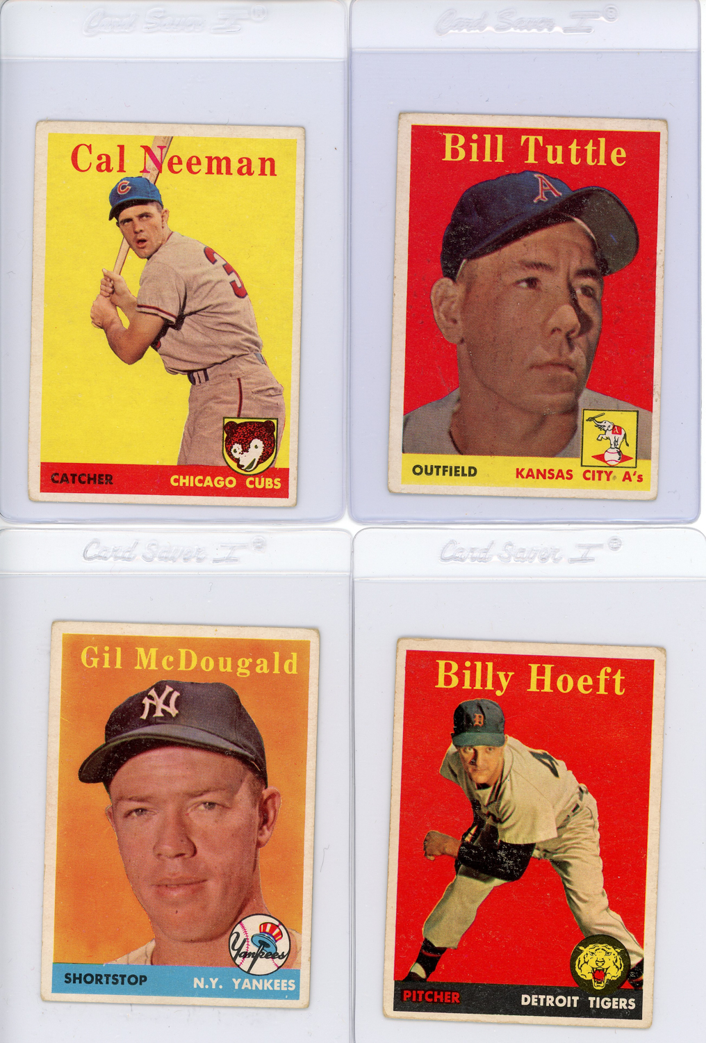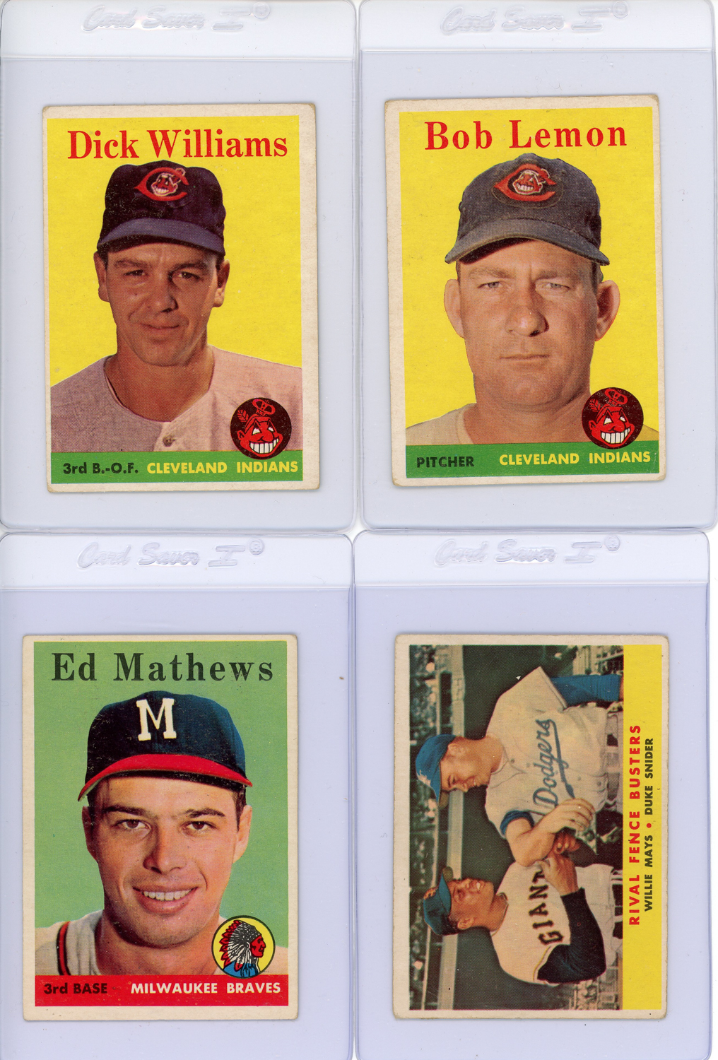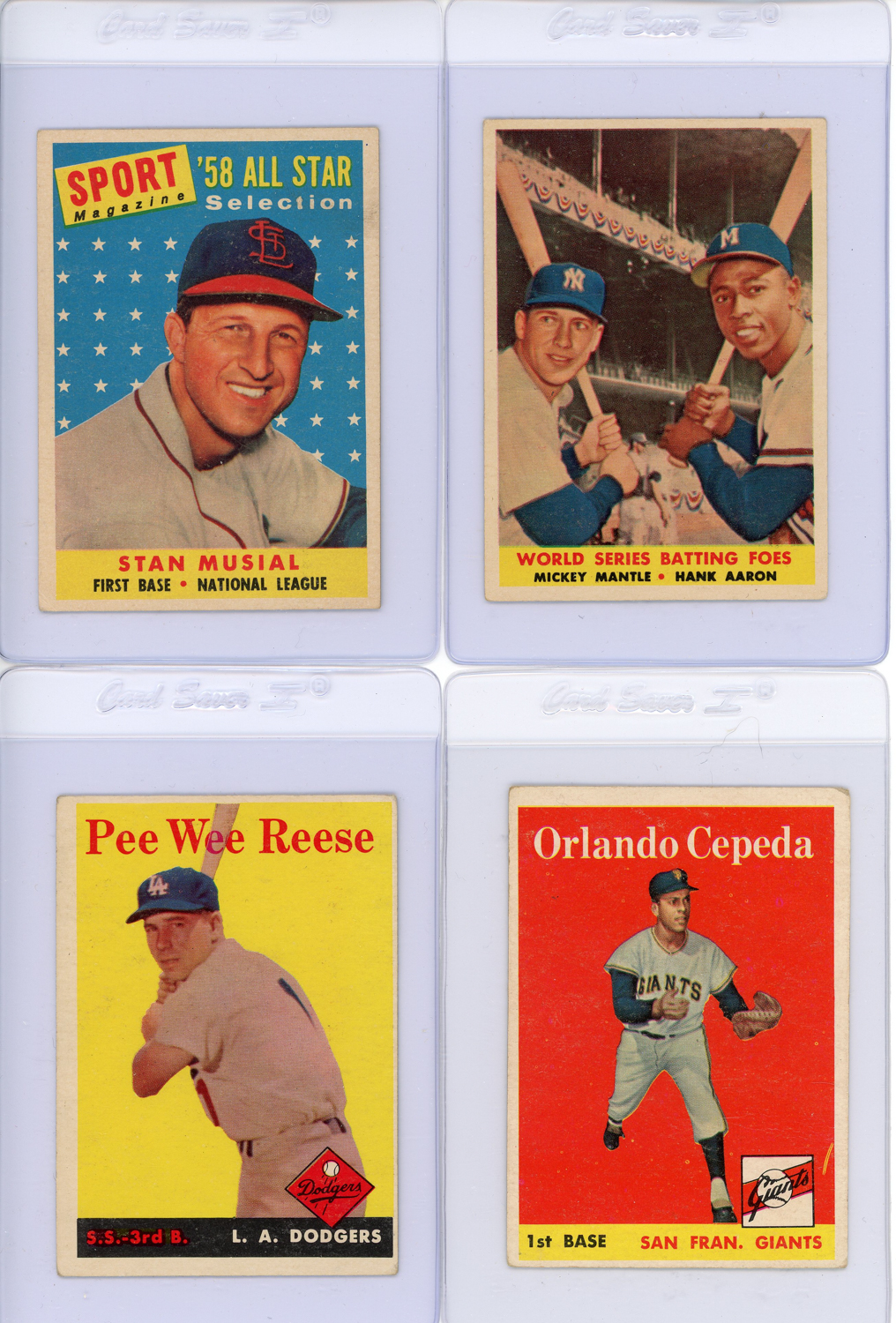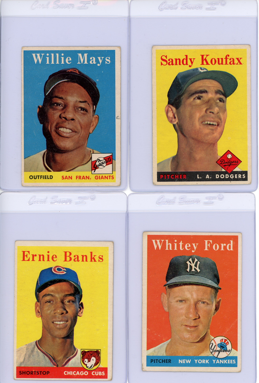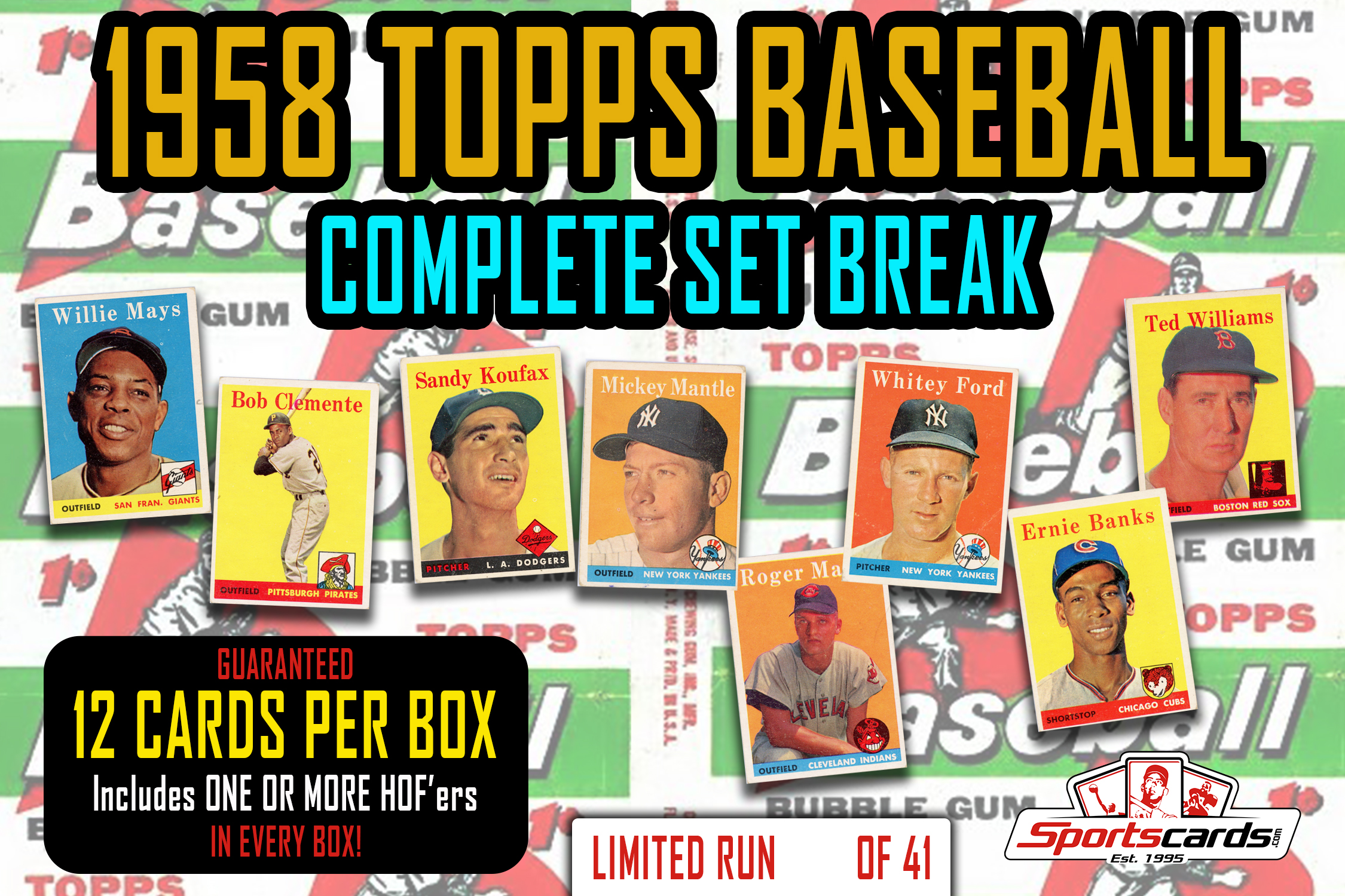 This 1958 Topps Baseball Set break BOX has 12 Cards. Guaranteed in each Box is a Hall of Famer! Look for Rare short prints, team cards, stars cards. A good majority of the cards are in gradable condition! Every card is in a Sportscards.com semi-rigid holder!