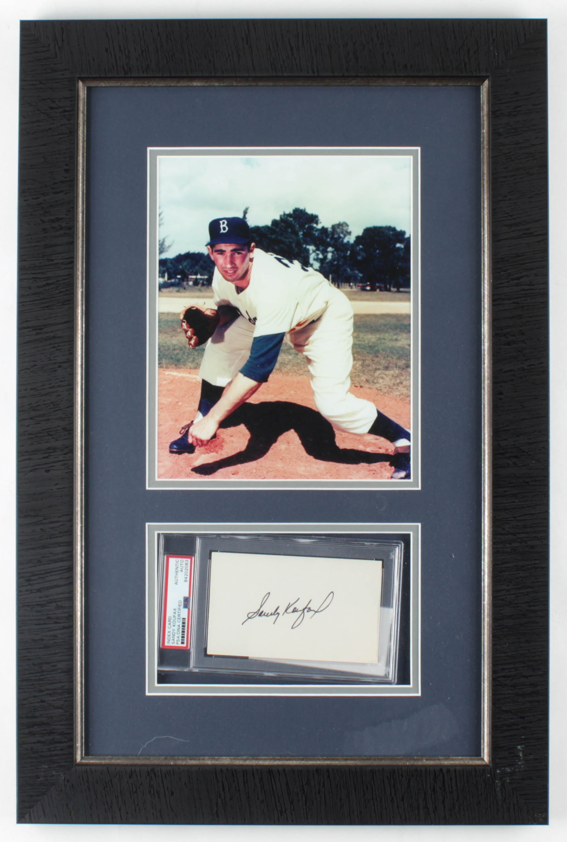 Custom frame measures approximately 15.5" x 23.5" in size and features a cut that has been hand-signed by Sandy Koufax (Brooklyn Dodgers, HOF).