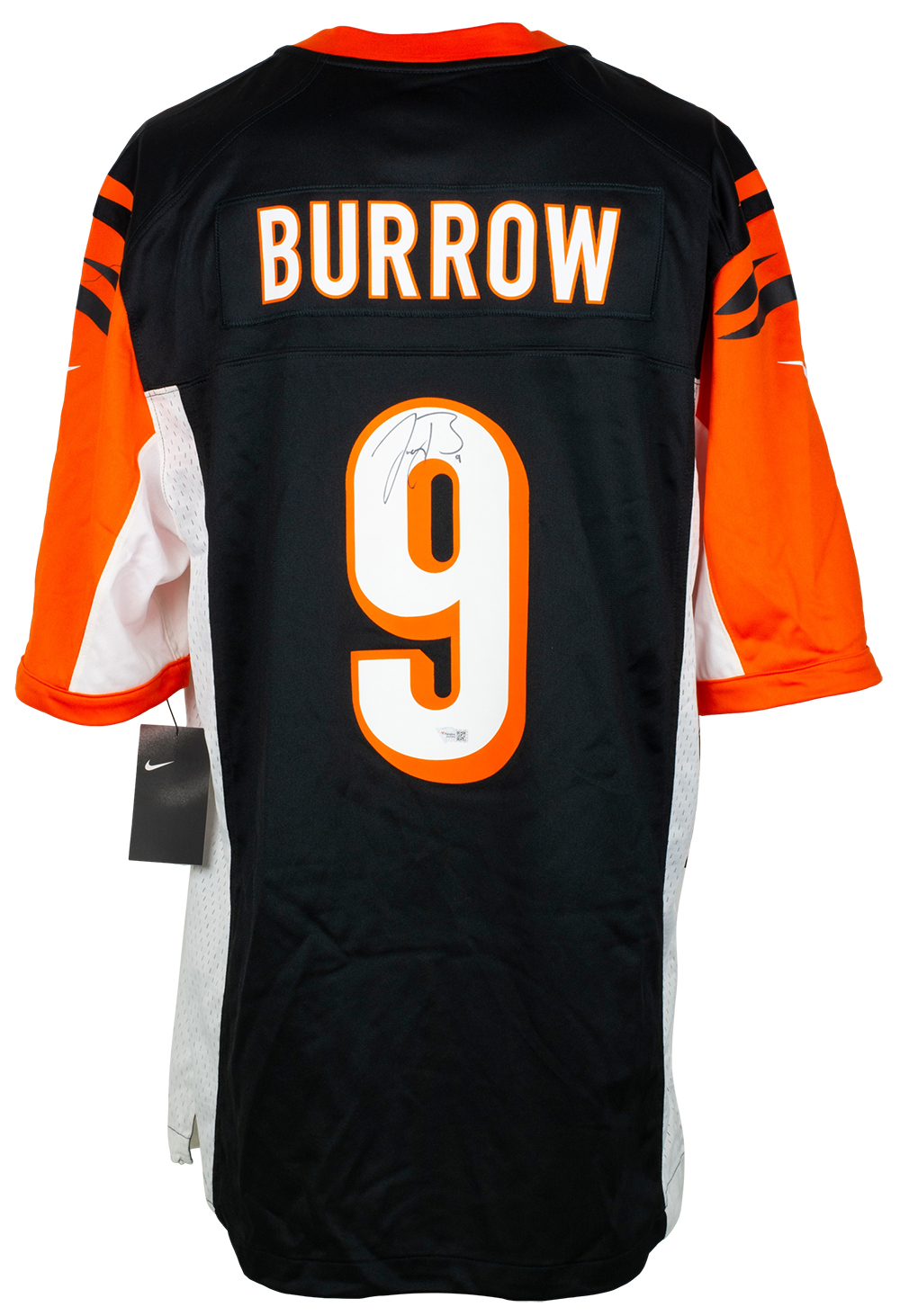 Authentic Nike on-field style jersey. Everything is sewn on, size XL. Hand-signed by by Joe Burrow (Cincinnati Bengals).