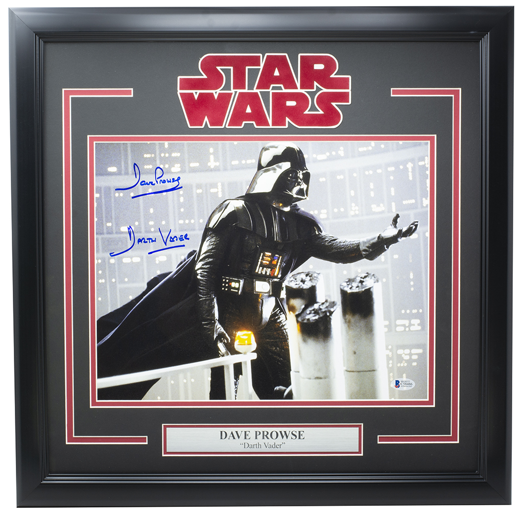 Custom framed display measures 16" x 20" in size and has been hand-signed by Dave Prowse.