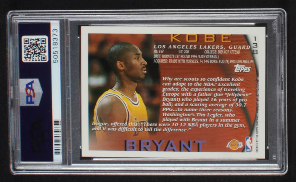 Kobe Bryant 1996-97 Topps #138 RC (PSA 9)