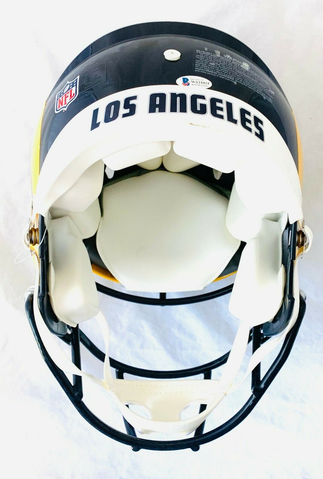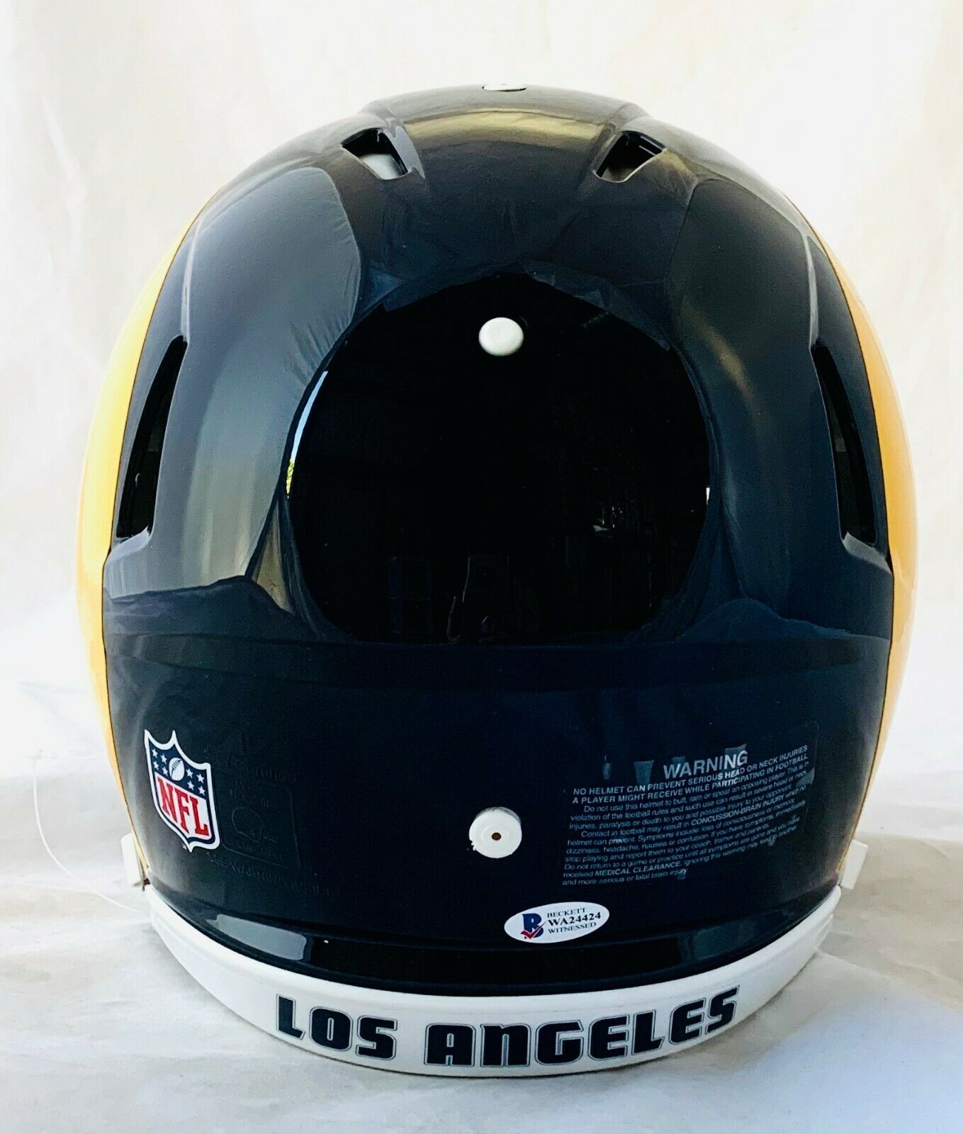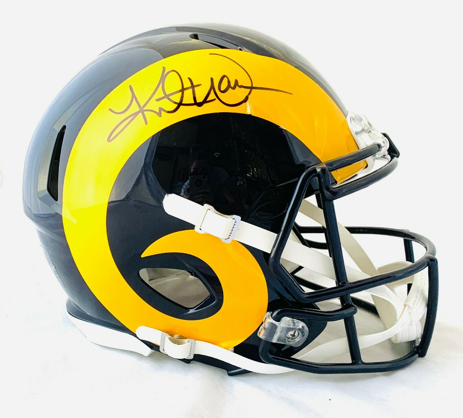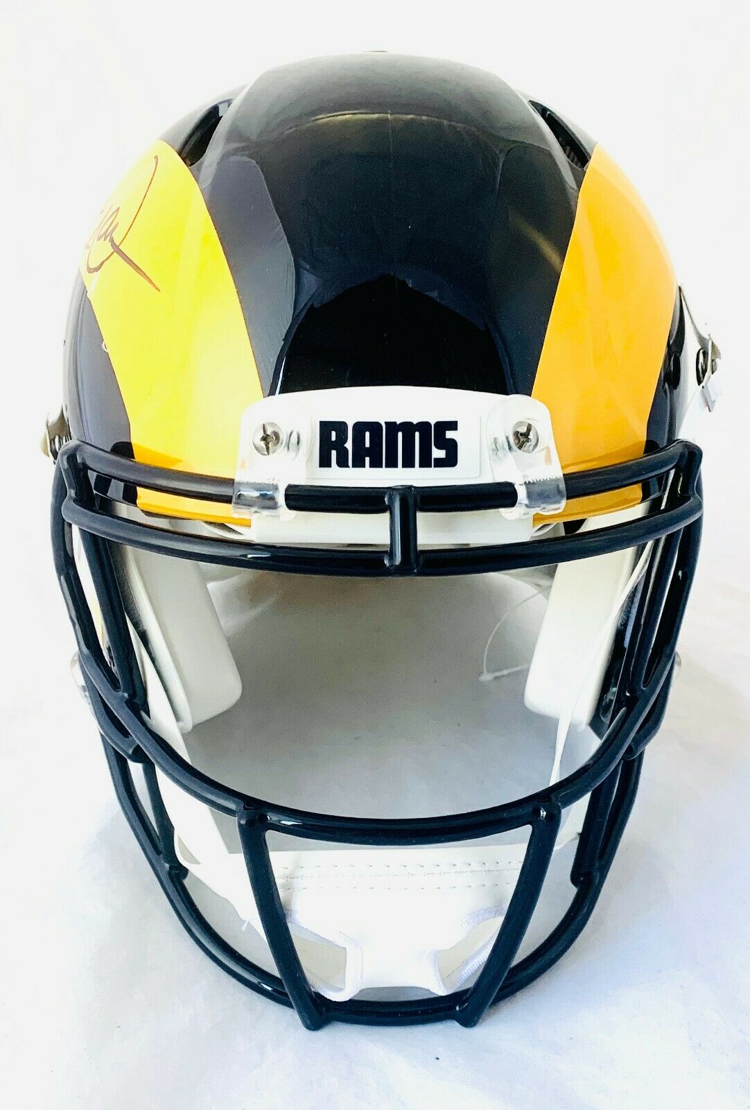 Los Angeles Rams full-size authentic on-field speed helmet has been hand-signed by Kurt Warner (HOF).