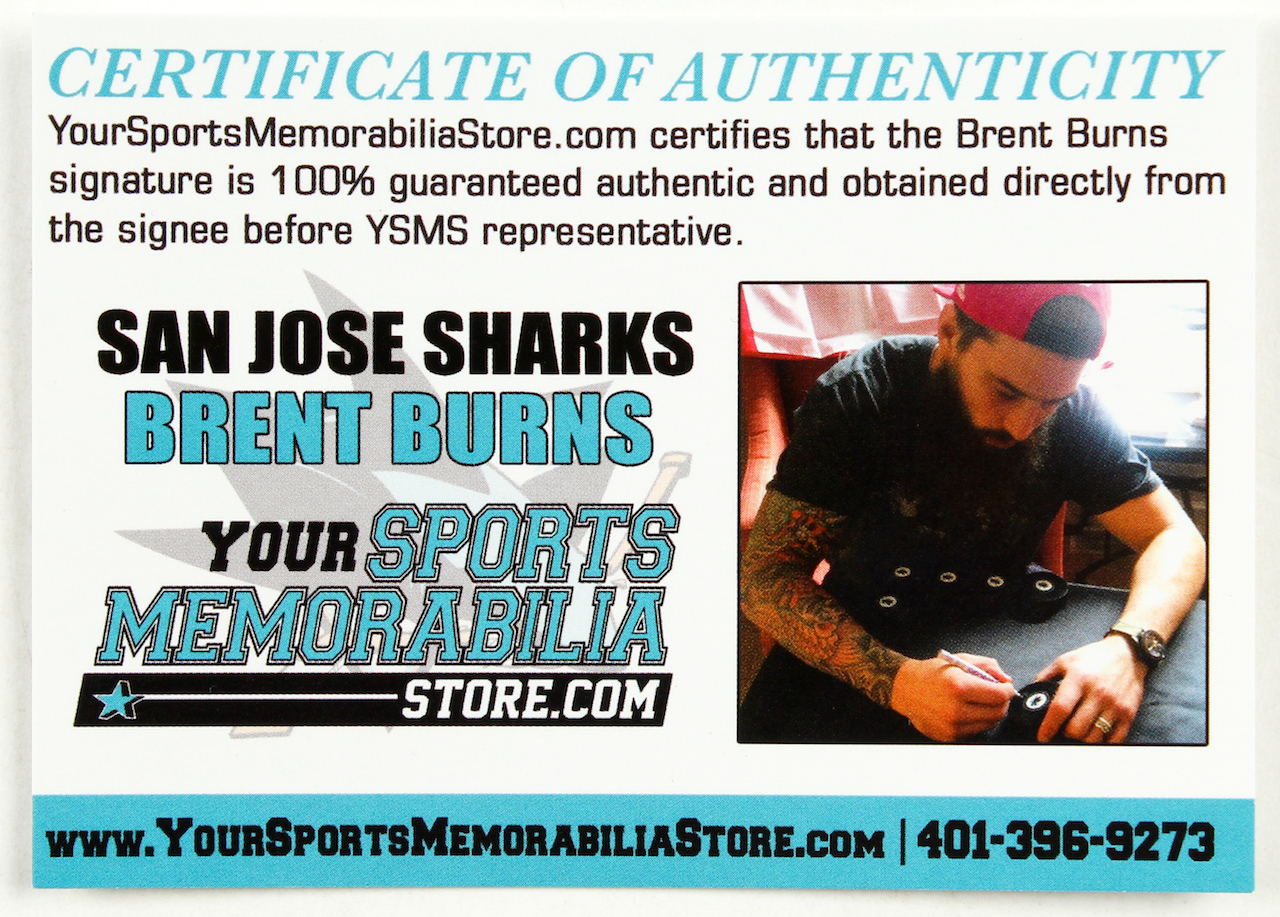 The lot / autograph(s) includes an official Your Sports Memorabilia Store Brent Burns hologram and matching COA for authenticity purposes.