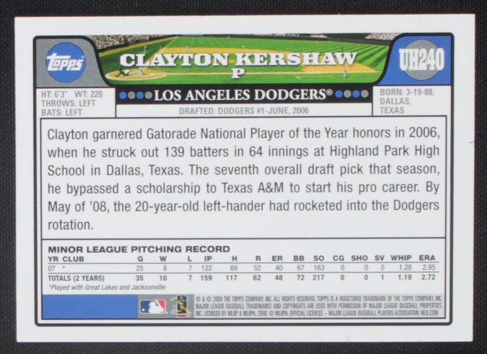 Clayton Kershaw 2008 Topps Update #UH240 RC