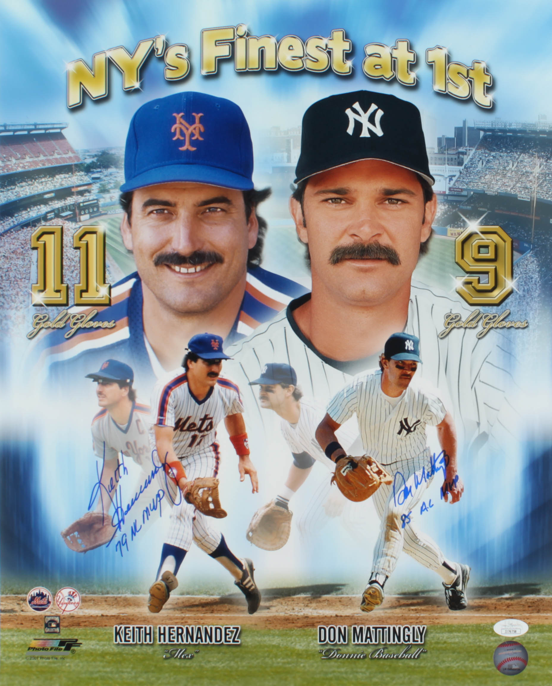Photo measures 16" x 20" in size and has been hand signed by Keith Hernandez and Don Mattingly.